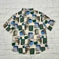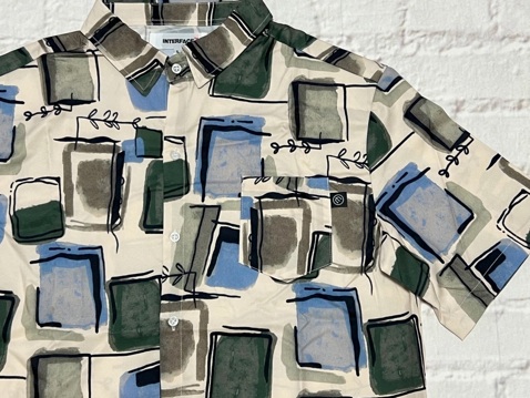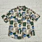 ナイロン生地にパームツリーや幾何学風な模様をプリントしたリゾート感、満載のシャツになります。同じ生地でショーツもあるので、セットアップも可能です。