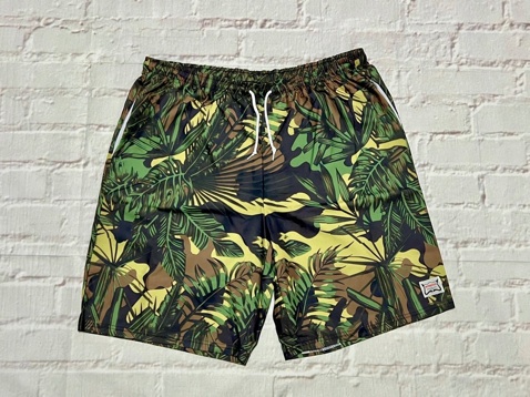 ナイロン生地に迷彩柄をプリントした、ショーツになります。普段使いはもちろん、プールや海などにも使用可能な水陸両用です。