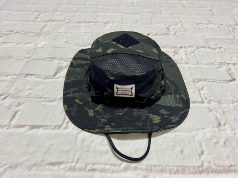 厚手のコットン リップストップ生地を使用したブッシュハットになりますメッシュの裏地、トップ裏に簡単なポケットを装備。前後のツバ先にワイヤーを入れて、好きな形に調節可能です。