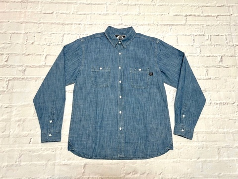 3本針のステッチや裾脇のマチなど、ビンテージライクな使用のシャンブレーシャツになります。
